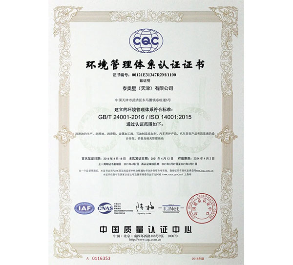 ISO14001是環(huán)境管理體系認(rèn)證的代號(hào)。ISO14001系列標(biāo)準(zhǔn)是由國(guó)際標(biāo)準(zhǔn)化組織制訂的環(huán)境管理體系標(biāo)準(zhǔn)。是順應(yīng)國(guó)際環(huán)境保護(hù)的發(fā)展趨勢(shì),依據(jù)國(guó)際經(jīng)濟(jì)貿(mào)易發(fā)展的需要而制定的。ISO14001:2015環(huán)境管理體系的順利通過(guò),進(jìn)一步證明了公司作為石化企業(yè)的運(yùn)轉(zhuǎn)環(huán)保合規(guī)性及各個(gè)產(chǎn)品的節(jié)能降耗性,為后續(xù)市場(chǎng)推廣,提供了更有力保障。