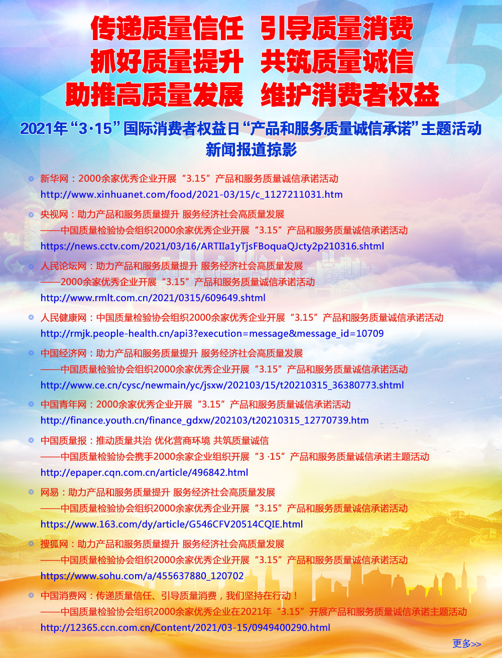 ?。ㄎ澹┦苷谐修k或根據(jù)市場(chǎng)和行業(yè)發(fā)展需要,開(kāi)展質(zhì)量檢驗(yàn)和質(zhì)量發(fā)展與質(zhì)量工作的宣傳、咨詢、培訓(xùn)和展覽展示等活動(dòng),推廣普及質(zhì)量檢驗(yàn)與質(zhì)量知識(shí),宣傳貫徹質(zhì)量法律法規(guī)、方針政策,宣傳質(zhì)量檢驗(yàn)與質(zhì)量工作在社會(huì)經(jīng)濟(jì)發(fā)展中的重要作用,發(fā)揮社會(huì)監(jiān)督作用,推進(jìn)質(zhì)量社會(huì)共治;
