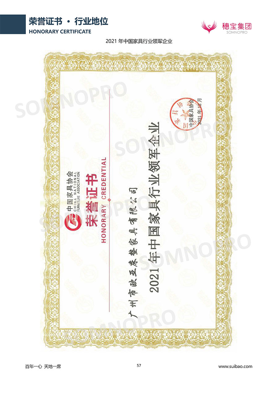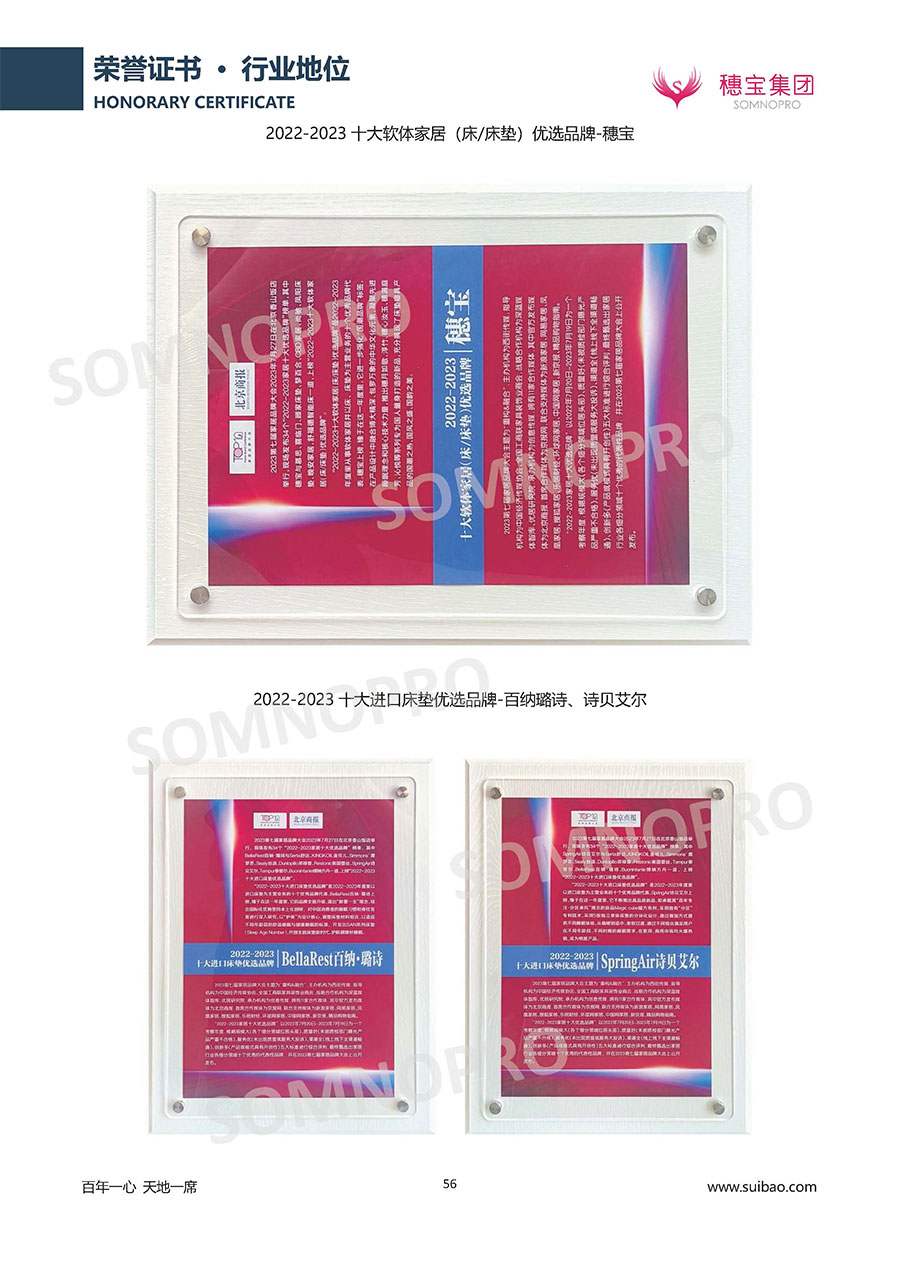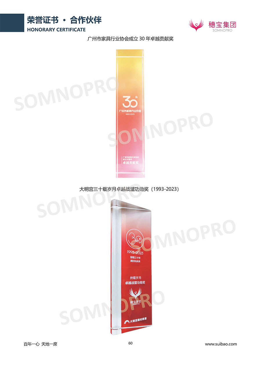 自1971年獨立研發(fā)生產(chǎn)出專屬國人的彈簧床墊,穗寶關于優(yōu)質深度睡眠的研究已有半個世紀的歷史。穗寶一直專注床墊,專注中國消費者的睡眠研究,針對中國人特點進行優(yōu)化創(chuàng)新,不斷提升國人的睡眠體驗,只為成就每個晚上8小時的優(yōu)質深度睡眠。憑借不斷革新的研發(fā)科技和深受消費者信賴的產(chǎn)品品質,穗寶集團旗下品牌和產(chǎn)品屢獲國內(nèi)外大獎,連續(xù)20年榮膺中國500最具價值品牌,品牌價值高達302.89億元。