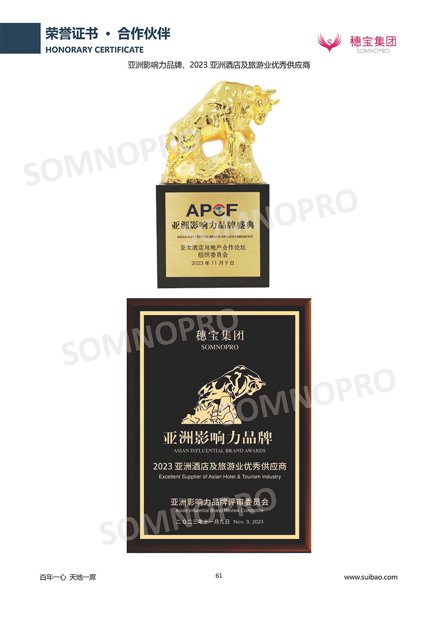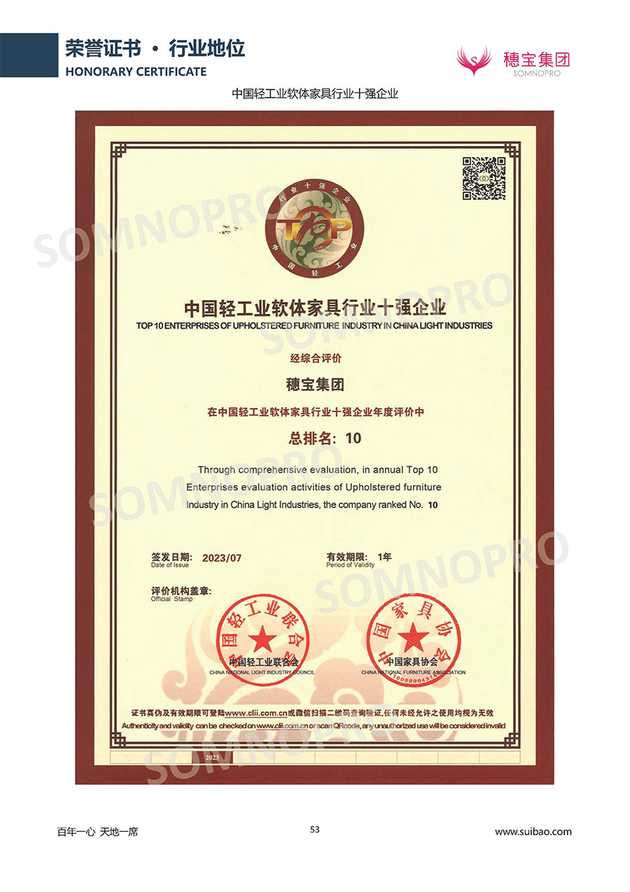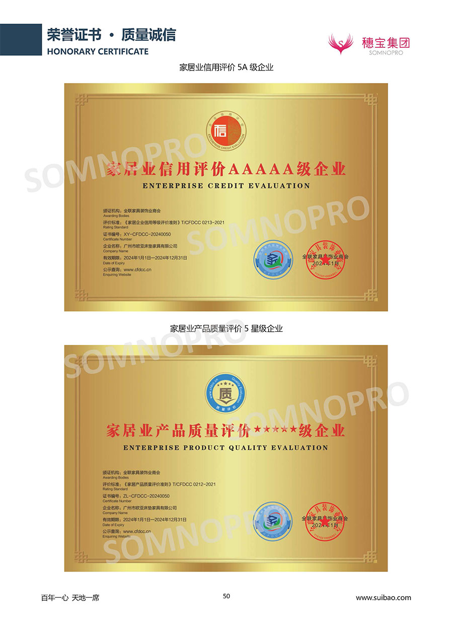 自1971年獨立研發(fā)生產(chǎn)出專屬國人的彈簧床墊,穗寶關于優(yōu)質深度睡眠的研究已有半個世紀的歷史。穗寶一直專注床墊,專注中國消費者的睡眠研究,針對中國人特點進行優(yōu)化創(chuàng)新,不斷提升國人的睡眠體驗,只為成就每個晚上8小時的優(yōu)質深度睡眠。憑借不斷革新的研發(fā)科技和深受消費者信賴的產(chǎn)品品質,穗寶集團旗下品牌和產(chǎn)品屢獲國內(nèi)外大獎,連續(xù)20年榮膺中國500最具價值品牌,品牌價值高達302.89億元。