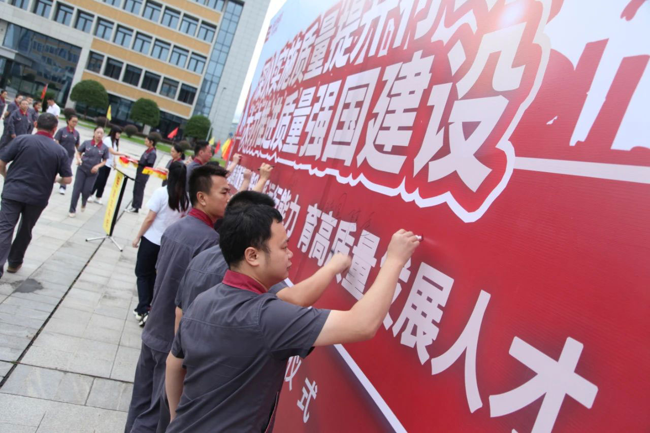 隨后,全體員工鄭重進行“質(zhì)量月”活動宣誓,公司領(lǐng)導(dǎo)及中層管理人員在宣誓墻上簽字,承諾在接下來的工作中,切實做好質(zhì)量管理工作,落實質(zhì)量管理措施,提升生產(chǎn)質(zhì)量管理水平,為公司高質(zhì)量發(fā)展提供堅強的保障。