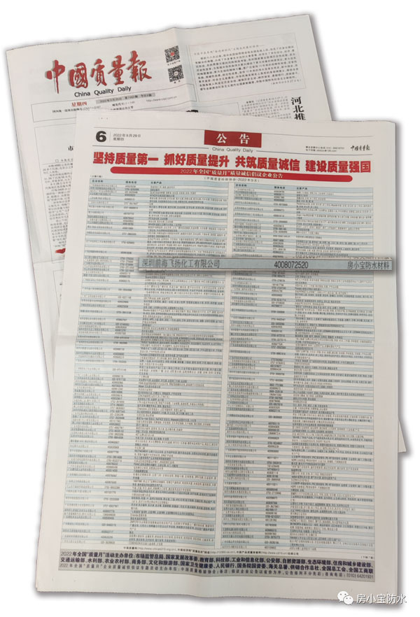 2022年全國(guó)“質(zhì)量月”企業(yè)質(zhì)量誠(chéng)信倡議活動(dòng)公告一經(jīng)發(fā)布,中國(guó)質(zhì)量網(wǎng)、中國(guó)消費(fèi)網(wǎng)、中國(guó)經(jīng)濟(jì)網(wǎng)等紛紛報(bào)道,房小寶防水以?xún)?yōu)秀的產(chǎn)品品質(zhì)從眾多優(yōu)秀企業(yè)中脫穎而出!