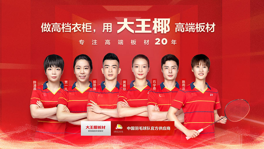 大王椰掌握5項(xiàng)關(guān)鍵除醛技術(shù),100余項(xiàng)國(guó)家技術(shù)專(zhuān)利,始終保持技術(shù)引領(lǐng)。大王椰不斷創(chuàng)新產(chǎn)品,陸續(xù)發(fā)布楠香木生態(tài)板、A7家具板、植萃除醛板、抗菌除醛板、A8高定板、1號(hào)原木板、雙效抗菌板、ENF級(jí)生態(tài)板、實(shí)木TT門(mén)板、PET柜門(mén)板等高端產(chǎn)品。2021年7月,大王椰正式簽約中國(guó)羽毛球隊(duì),致力于打造冠軍品質(zhì),大王椰讓更多健康產(chǎn)品走進(jìn)更多家庭。2024年4月,大王椰正式成為航天CNSPACE官方合作品牌,以航天精神為榜樣,不斷提升家居健康品質(zhì)。
