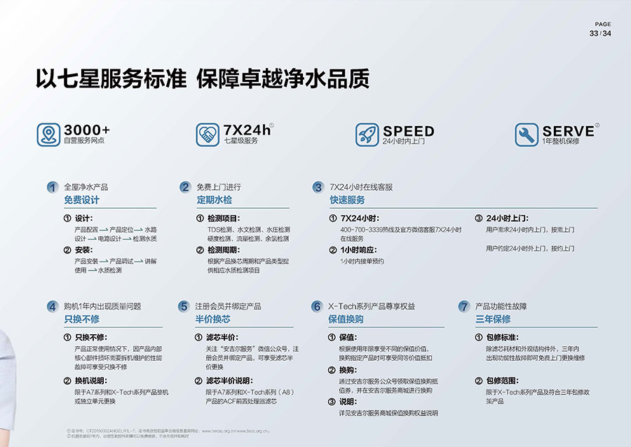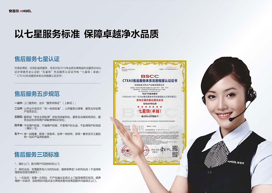 安吉爾擁有高標(biāo)準(zhǔn)的七星服務(wù)體系,服務(wù)覆蓋全國區(qū)縣2900+,全年每天24小時無間斷為用戶服務(wù),全面保障飲用水安全。