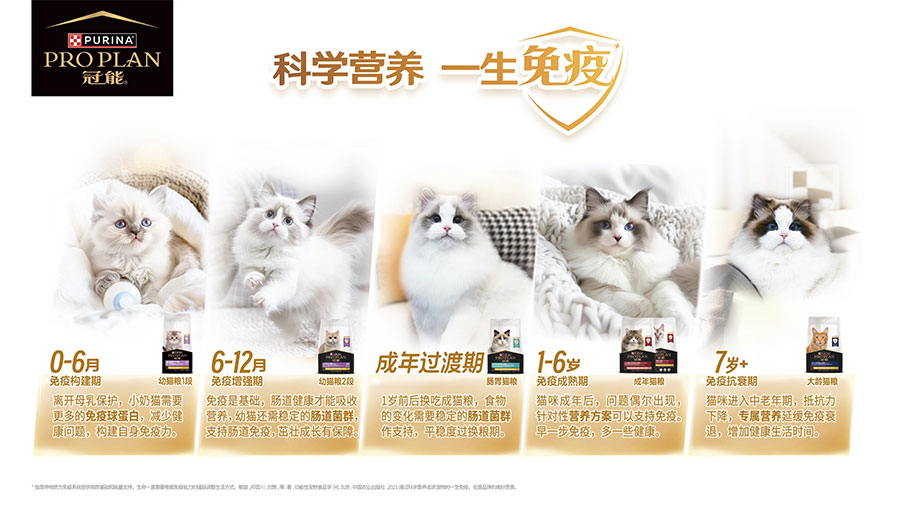 *指營(yíng)養(yǎng)物質(zhì)為免疫系統(tǒng)提供物質(zhì)基礎(chǔ)和能量支持,生命一直需要根據(jù)免疫能力的強(qiáng)弱調(diào)整生活方式。蔡旋,鄧百川, 劉策等著. 功能性寵物食品學(xué)[M]. 北京:中國(guó)農(nóng)業(yè)出版社,2023.通過(guò)科學(xué)營(yíng)養(yǎng)追求寵物的一生免疫,也是品牌的美好愿景。