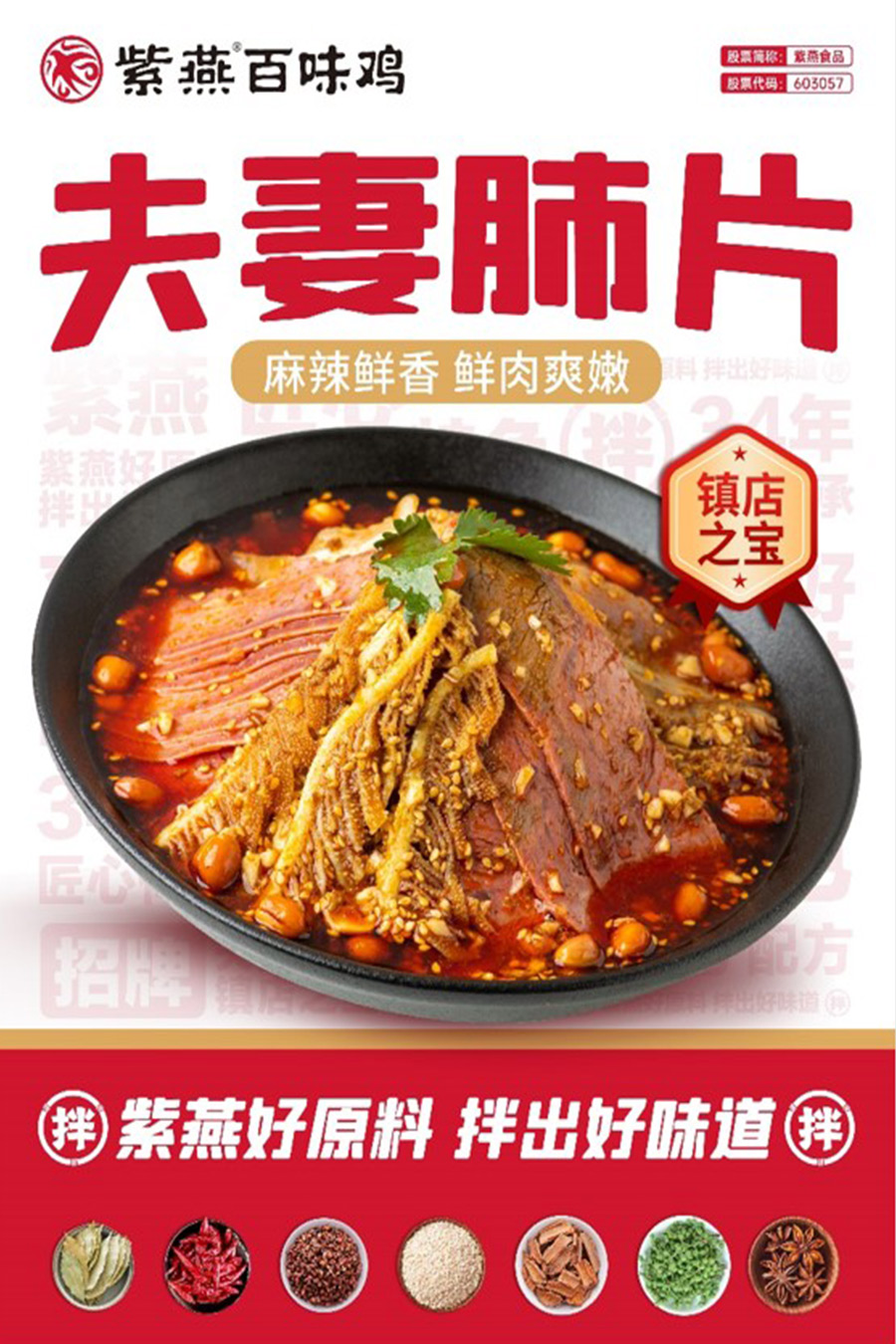 紫燕主營(yíng)業(yè)務(wù)為鹵制食品的研發(fā)、生產(chǎn)和銷售,主要產(chǎn)品為夫妻肺片、百味雞、藤椒雞等以雞、鴨、牛、豬等禽畜產(chǎn)品以及蔬菜、水產(chǎn)品、豆制品為原材料的鹵制食品,應(yīng)用場(chǎng)景以佐餐消費(fèi)為主、休閑消費(fèi)為輔,主要品牌為“紫燕”。