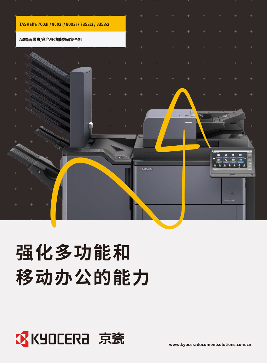 京瓷株式會社由稻盛和夫先生創(chuàng)辦于1959年。“敬天愛人”社訓(xùn)貫徹集團(tuán)各分公司運營中。京瓷辦公信息系統(tǒng)(中國)有限公司主要負(fù)責(zé)彩色和黑白數(shù)碼復(fù)合機、彩色和黑白數(shù)碼激光打印機、生產(chǎn)型彩色噴墨數(shù)碼印刷系統(tǒng)、辦公解決方案等系列辦公自動化設(shè)備的銷售。京瓷產(chǎn)品憑借其更低的后期總體使用成本,可靠的長壽命感光鼓,獲得眾多政府、企業(yè)的青睞,在中國的市場占有率逐年穩(wěn)步提升。