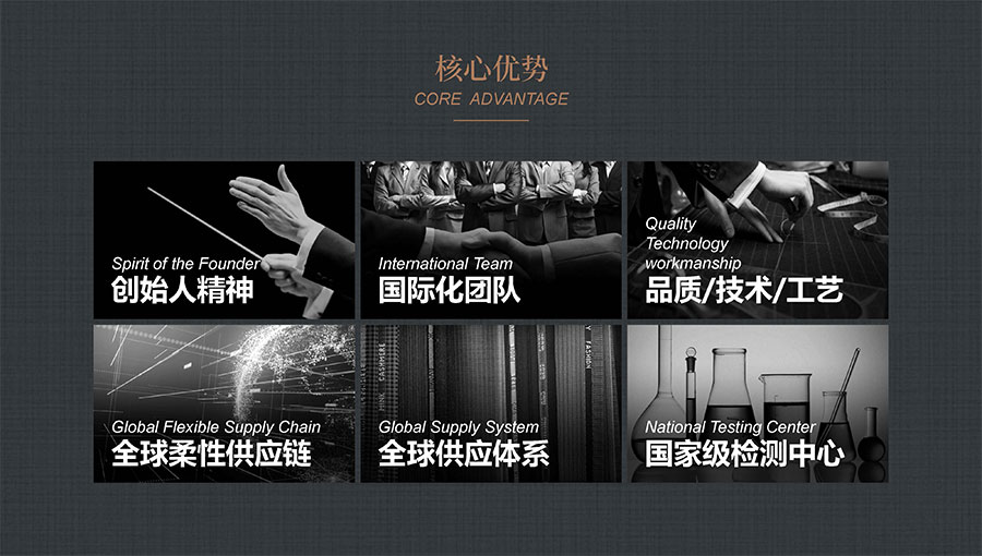 大楊集團堅持自主創(chuàng)新,聘請意大利、日本、美國等資深專家,組建具備世界領先水平的技術研發(fā)團隊,尤其是自主研發(fā)的全毛芯、全手縫等多項核心技術,確立了企業(yè)在世界服裝行業(yè)的領先地位。目前,大楊集團擁有6家高新技術企業(yè),1家瞪羚企業(yè)、2家專精特新企業(yè)和1個國家級工業(yè)設計中心,1個省級企業(yè)技術中心,1個市級科技創(chuàng)新服務機構(gòu),是中國服裝產(chǎn)品創(chuàng)新基地、遼寧省標準化示范基地。旗下遼寧科諾檢驗檢測中心,已躋身國家中小企業(yè)公共服務示范平臺,獲得CNAS國家實驗室認可、CMA資質(zhì)認定,是全國紡織品標準化技術委員會“紡織標準驗證實驗室”,擁有500余項紡織類檢測標準能力,已累計主持或參與制定國家標準,以及制定各類企業(yè)標準30多項。
