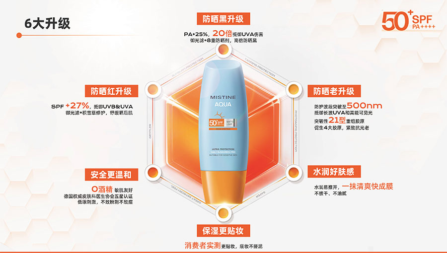 MISTINE蜜絲婷堅持圍繞對“光”的研究,在光與防曬護膚、光與色彩妝容的產(chǎn)品應用層面,研究光、理解光、樂享光,持續(xù)不斷地提供產(chǎn)品解決方案,滿足消費者對防曬美白、潮流妝容、護膚健康的需求。