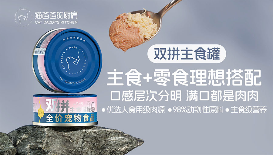 2015年,面對十年前參差不齊的貓糧品質(zhì),品牌創(chuàng)始人貓爸在貼吧分享的自制貓飯被網(wǎng)友瘋搶,于是,“貓爸爸的廚房”就此誕生。
