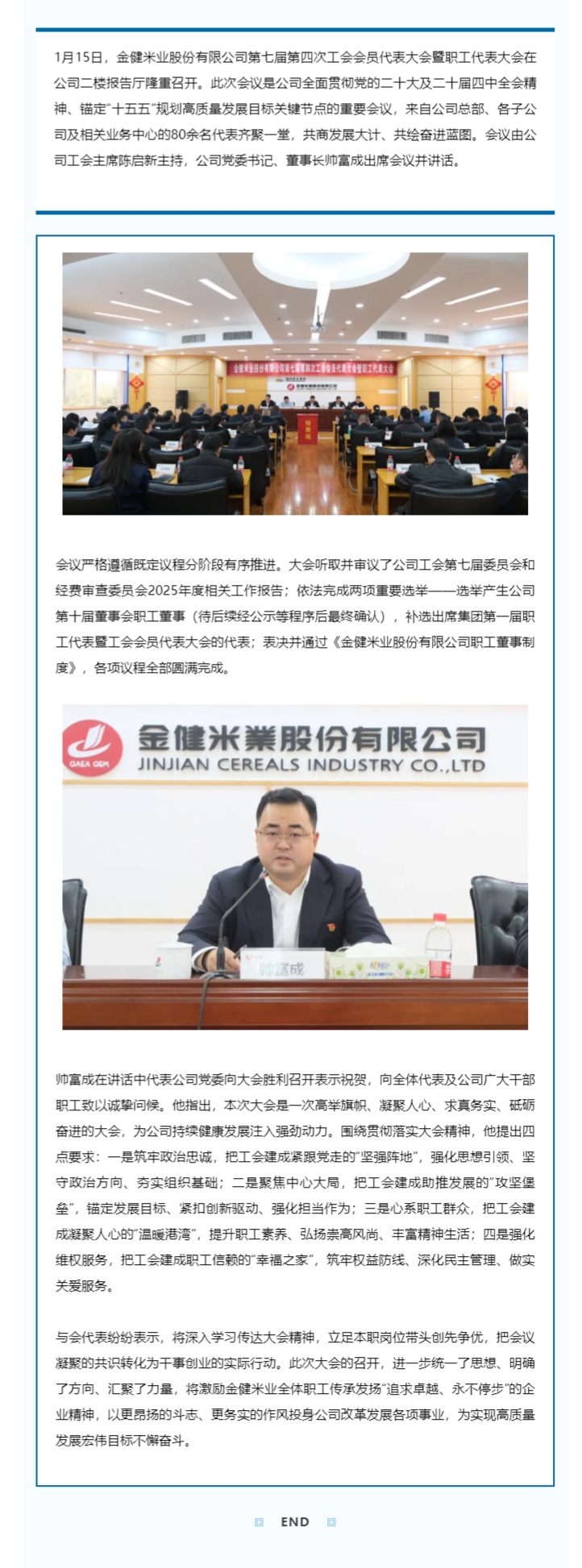 凝聚奮進(jìn)合力 共繪高質(zhì)量發(fā)展新藍(lán)圖 金健米業(yè)第七屆第四次工代會(huì)暨職代會(huì)勝利召開(kāi)