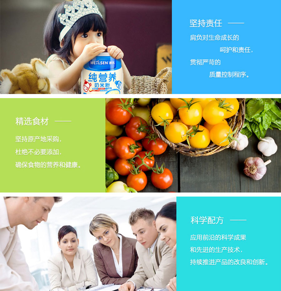 主要產(chǎn)品:WEYLSEN預(yù)包裝食品、嬰幼兒輔食、零食