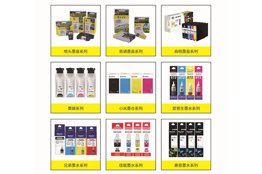 主要產品:科思特、勁彩、諾美佳、帝威、印友品牌硒鼓、墨盒、色帶、墨水、碳粉、粉盒、碳帶、配件等