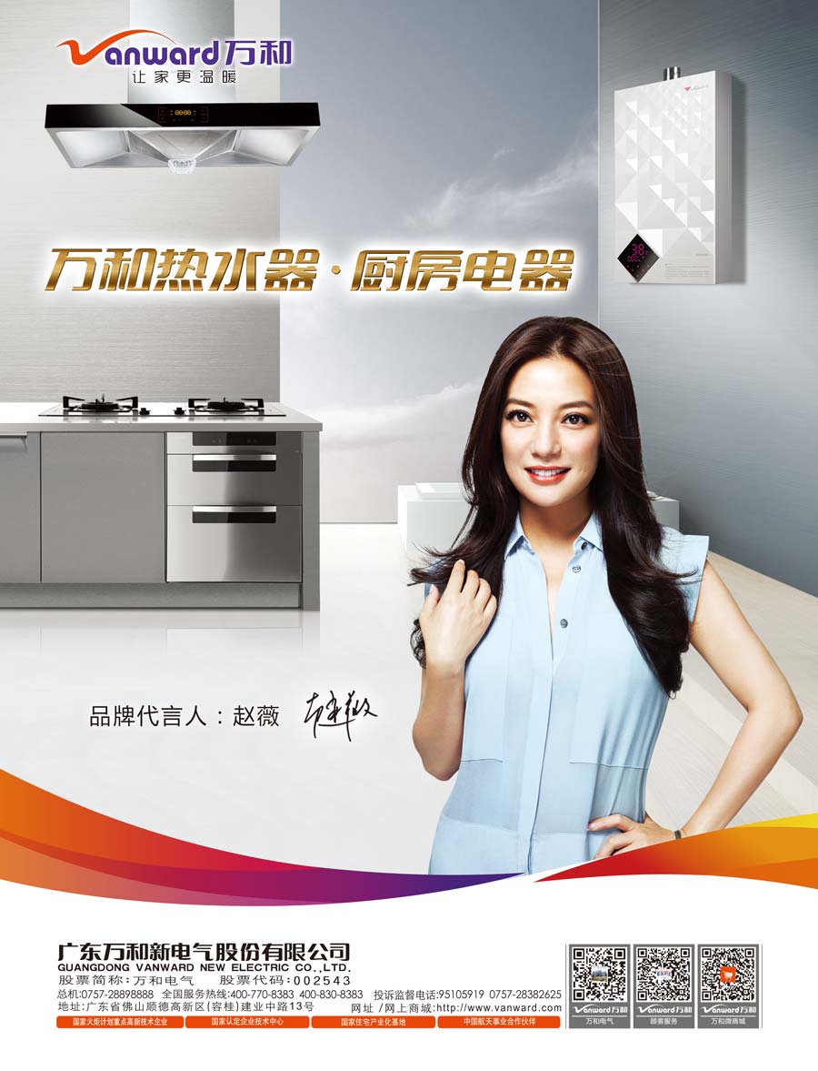 主要產品:萬和熱水器、燃氣灶、消毒碗柜、煙機