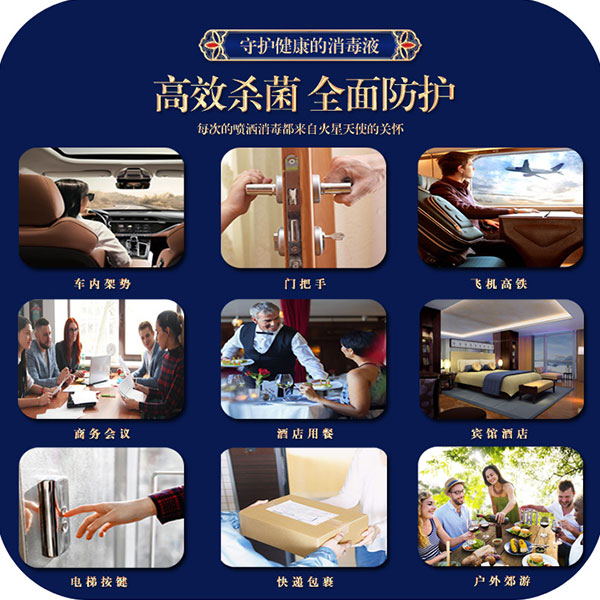 皮膚黏膜消毒液及手消毒液,采用天然植物提取復(fù)配液,聚六亞甲基單胍和植物提取物等。本產(chǎn)品不含酒精、次氯酸及次氯酸鈉(84消毒液)。國家衛(wèi)生健康委員會發(fā)布的《新冠肺炎疫情期間現(xiàn)場消毒評價(jià)標(biāo)準(zhǔn)》,指示微生物抵抗力應(yīng)與新型冠狀病毒相當(dāng)或更高,化學(xué)消毒時,可選用金黃色葡萄球菌(ATCC6538)和大腸桿菌(8099)作為指示微生物,經(jīng)國家認(rèn)可的第三方檢測,30秒對金黃色葡萄球菌、大腸桿菌、銅綠假單胞菌的殺滅率為99.999%,30秒對白色念球菌的殺滅率為99.99%,對不銹鋼、銅、鋁、碳鋼基本無腐蝕,急性經(jīng)口毒性試驗(yàn)屬于實(shí)際無毒級物質(zhì),急性吸入毒性試驗(yàn)屬實(shí)際無毒,急性眼刺激試驗(yàn)為無刺激性。