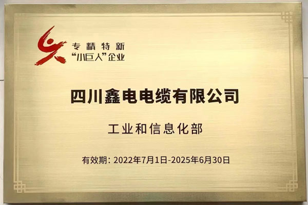 今年九月,工信部公示了第四批國家級專精特新“小巨人”企業(yè)名單,鑫電電纜在電線電纜領(lǐng)域多年深耕,成功入選名單。這是對公司創(chuàng)新能力、技術(shù)水平、行業(yè)地位、質(zhì)量效益等方面及綜合實(shí)力的認(rèn)可,將持續(xù)提升公司品牌知名度,增強(qiáng)公司競爭力。