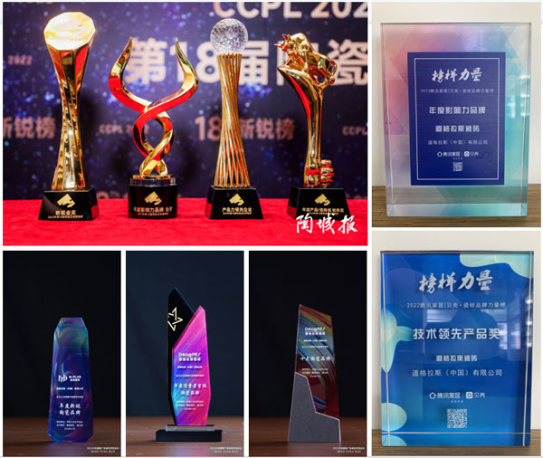 年初,道格拉斯便獲得了“全國質量檢驗穩(wěn)定合格產(chǎn)品”、“全國質量信譽保障產(chǎn)品”、“全國產(chǎn)品和服務質量誠信領先品牌”、“全國瓷磚行業(yè)質量領先企業(yè)”、“全國瓷磚行業(yè)質量領先品牌”和“全國產(chǎn)品和服務質量誠信示范企業(yè)”六項國家級質量認證。隨后,道格拉斯不斷地獲得行業(yè)的嘉許,包括新銳榜“影響力品牌金獎”、“產(chǎn)品力領先企業(yè)”、“年度產(chǎn)品優(yōu)秀獎(數(shù)碼釉—簡素時光系列)”、“榮獲巖板金獎(1200*2600*9原素系列)”;《榜樣力量》騰訊家居|貝殼·瓷磚品牌盛典“年度影響力品牌”、“技術領先產(chǎn)品獎”;陶瓷行業(yè)年度榜單“十大陶瓷品牌”及“年度消費者首選陶瓷品牌”;中國意大利陶瓷設計大賽“創(chuàng)意優(yōu)秀獎(意尚瓷磚-恒久系列)”等多個獎項。