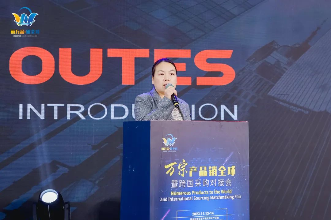 與此同時(shí),中廣電器集團(tuán)海外營(yíng)銷(xiāo)中心負(fù)責(zé)人劉麗萍作為麗水經(jīng)開(kāi)區(qū)企業(yè)代表,在對(duì)接會(huì)開(kāi)幕式上作相關(guān)主題分享。她圍繞集團(tuán)介紹、主營(yíng)業(yè)務(wù)、產(chǎn)品研發(fā)等多方面內(nèi)容,向來(lái)自世界各地的采購(gòu)商進(jìn)行全方位的企業(yè)推介。