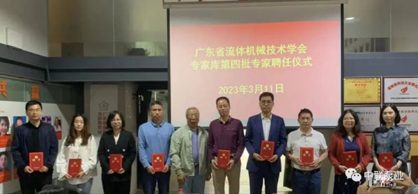 2023年3月11日,中聯(lián)泵業(yè)董事長、湖南省五金機電商會會長潘世群先生被聘任為廣東省流體機械技術(shù)學(xué)會專家?guī)斓谒呐夹g(shù)專家。
