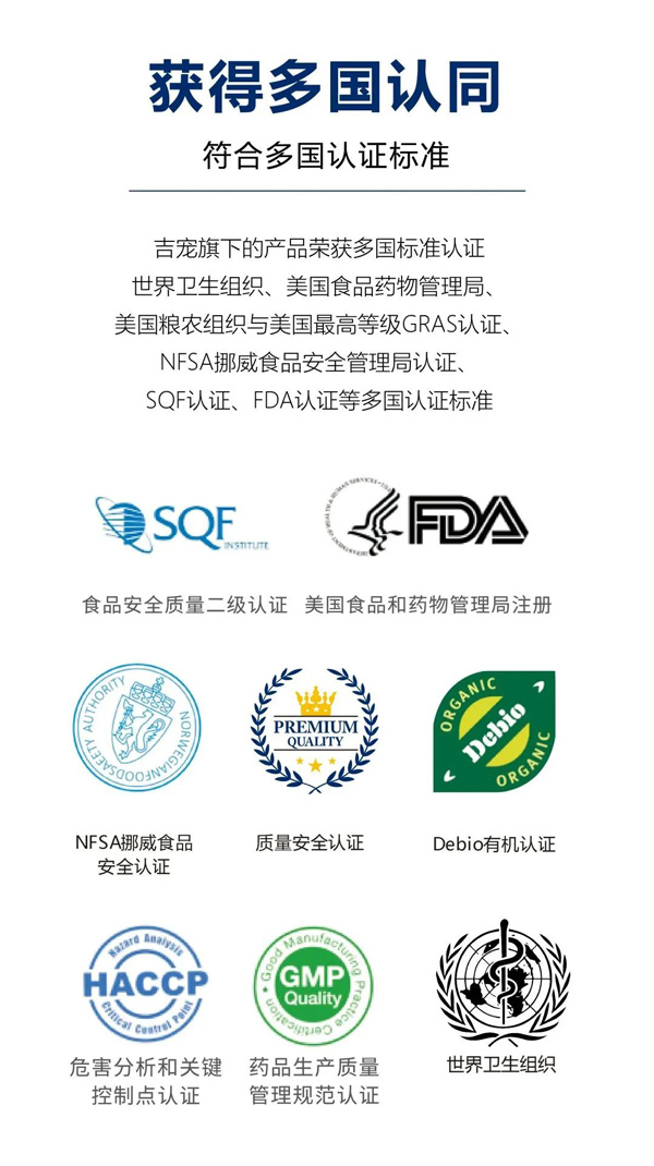 吉寵旗下的產(chǎn)品榮獲多國(guó)標(biāo)準(zhǔn)認(rèn)證