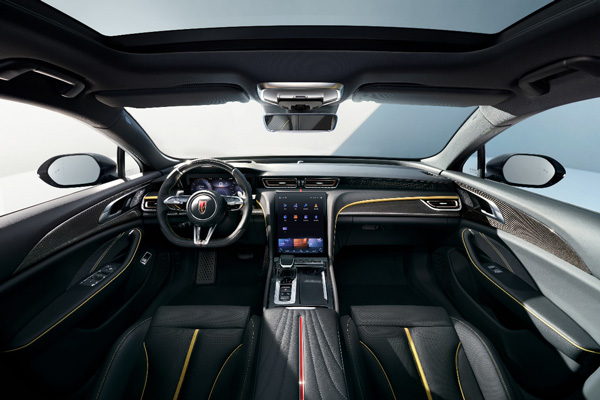 在內(nèi)飾設(shè)計(jì)方面,紅旗H6以“環(huán)懸科技”概念,采用流動(dòng)輕盈的整體架構(gòu),為駕乘者帶來尊貴體驗(yàn)。超大中控豎屏、“金盞黃+黑色”內(nèi)飾、“真皮+碳纖維”方向盤、運(yùn)動(dòng)座椅、全液晶儀表盤、精致簡(jiǎn)潔的門板和飾條設(shè)計(jì),在傳承家族“中軸式布局”的基礎(chǔ)上,呈現(xiàn)出兼具豪華尊享、智慧科技、激情動(dòng)感的風(fēng)尚氣息。