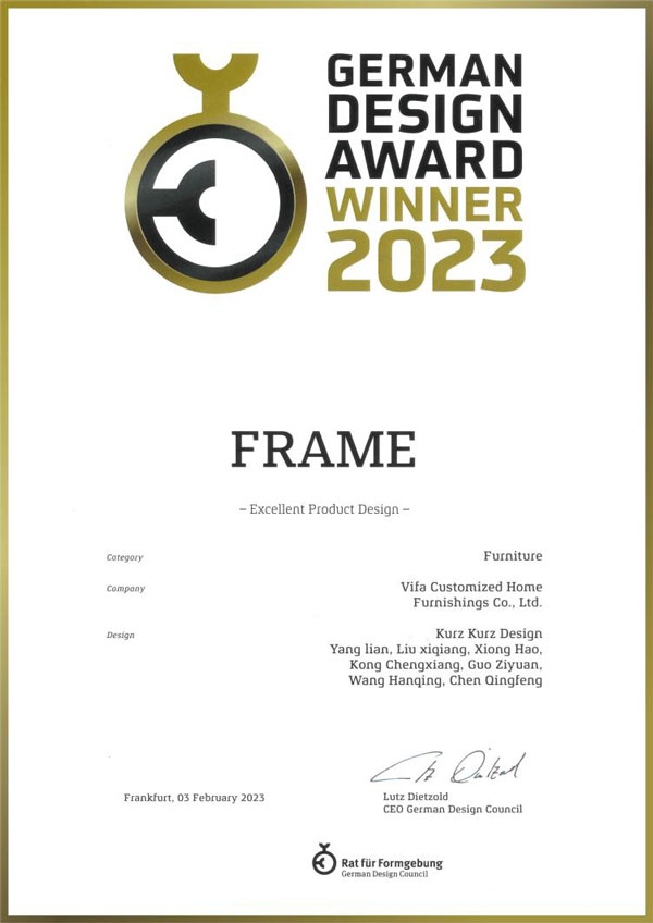 近日,由德國設(shè)計(jì)委員會(huì)主辦的German Design Awards 德國國家設(shè)計(jì)獎(jiǎng)公布了2023年度獲獎(jiǎng)名單,高端家居定制品牌vifa威法的作品FRAME(Alita智能廚廳)榮獲卓越產(chǎn)品設(shè)計(jì)大獎(jiǎng)(Excellent Product Design),這也是世界上最具價(jià)值的設(shè)計(jì)獎(jiǎng)項(xiàng)之一,代表著威法的設(shè)計(jì)能力得到世界設(shè)計(jì)領(lǐng)域的高度贊譽(yù),凸顯威法對高端生活美學(xué)的卓越引領(lǐng)能力。
