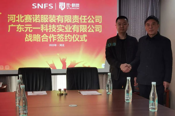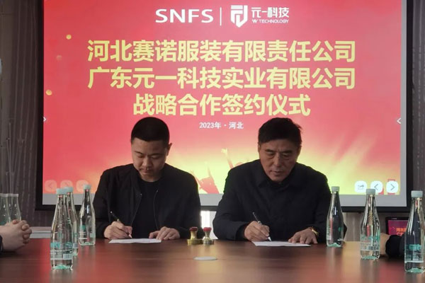2023年2月27日,河北賽諾服裝有限責(zé)任公司同廣東元一科技實業(yè)有限公司在石家莊品匯大廈簽署了戰(zhàn)略合作協(xié)議,河北賽諾將引進(jìn)十臺價值數(shù)百萬元的自動鋪布和自動裁床設(shè)備,旨在通過加強(qiáng)雙方在科技方面的協(xié)作進(jìn)一步深化戰(zhàn)略伙伴關(guān)系,推動雙方在數(shù)字化、自動化、智能化等方面的深度合作和公司的長遠(yuǎn)發(fā)展。