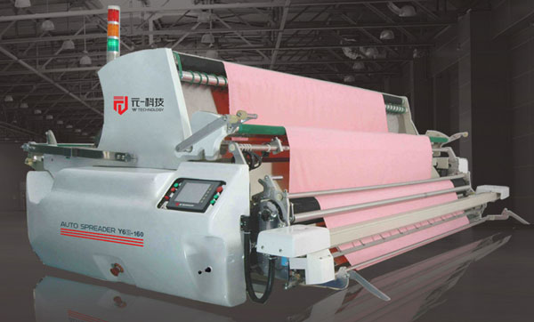 元一科技Y6S型自動鋪布機(jī),自動撥邊裝置獲得國家發(fā)明專利,開創(chuàng)針?biāo)罂梼捎娩伈夹聲r代,完美解決針織布料卷邊問題,實現(xiàn)卷邊撥平,張力釋放。伺服自動跟隨驅(qū)動送布滾輪的傳送裝置精確與主伺服行走相匹配,實現(xiàn)無張力鋪布效果,對邊精準(zhǔn)度控制在5mm以內(nèi)。
