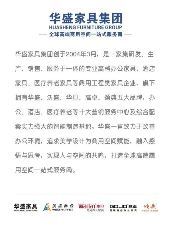 作為在“中國辦公家具重鎮(zhèn)”成長起來的龍頭企業(yè)以及中山市辦公家具行業(yè)協(xié)會會長單位,華盛希望向整個辦公家具產(chǎn)業(yè)和消費市場傳遞華盛穩(wěn)實、積極進(jìn)取、值得信任和信賴的平臺型、服務(wù)型的企業(yè)形象,從而團(tuán)結(jié)全市辦公家具行業(yè)力量,借力全國乃至全球資源,助力中山市“中國辦公家具重鎮(zhèn)”建設(shè),助推中國辦公家具產(chǎn)業(yè)高質(zhì)量發(fā)展,擴(kuò)大區(qū)域知名度和行業(yè)影響力,讓辦公家具企業(yè)得以更好更快的發(fā)展,同時積極籌劃中山打造“中國商用家具之都”!