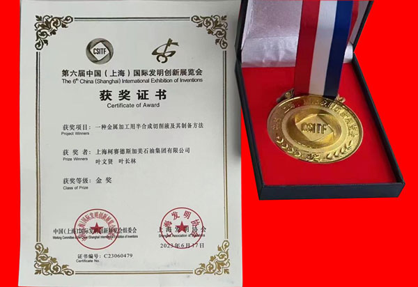 日前,中國(上海)國際發(fā)明創(chuàng)新展覽會組委會、上海發(fā)明協(xié)會主辦“第六屆中國(上海)國際發(fā)明創(chuàng)新展覽會盛大頒獎”主題活動,來自上海柯賽德斯加美石油集團有限公司一舉奪得頭籌,由該集團公司研發(fā)及工程技術(shù)團隊的骨干聯(lián)手合作的最新發(fā)明創(chuàng)新成果——“一種金屬加工用半合成切削液及其制備方法”,符合環(huán)境友好的發(fā)展趨勢,具備難加工材料高速切削的綠色潤滑與保護技術(shù),能夠助力碳達峰的發(fā)展戰(zhàn)略而獲得金獎,受到了業(yè)界的廣泛關(guān)注。