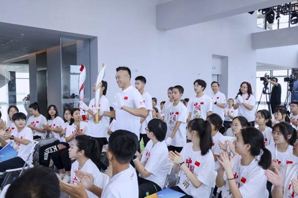 活動現(xiàn)場舉行了莊嚴(yán)隆重的奧運火炬?zhèn)鬟f儀式,將活動推向高潮。2024年巴黎奧運會舉辦之際,安踏希望班的同學(xué)們也將高中畢業(yè)步入大學(xué),迎來人生新階段?;鹁嬖谕瑢W(xué)和嘉賓的手中傳遞,點燃了同學(xué)們對未來的憧憬,體育的力量燃起了沖刺的斗志。
