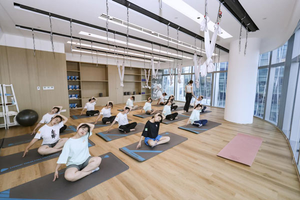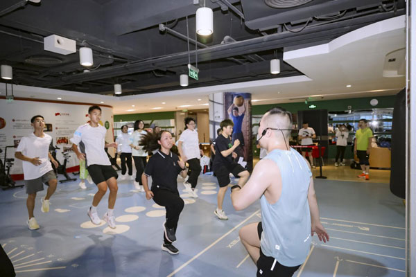 安踏集團(tuán)董事局主席丁世忠與安踏希望班的同學(xué)們在公司海景健身房一同運動