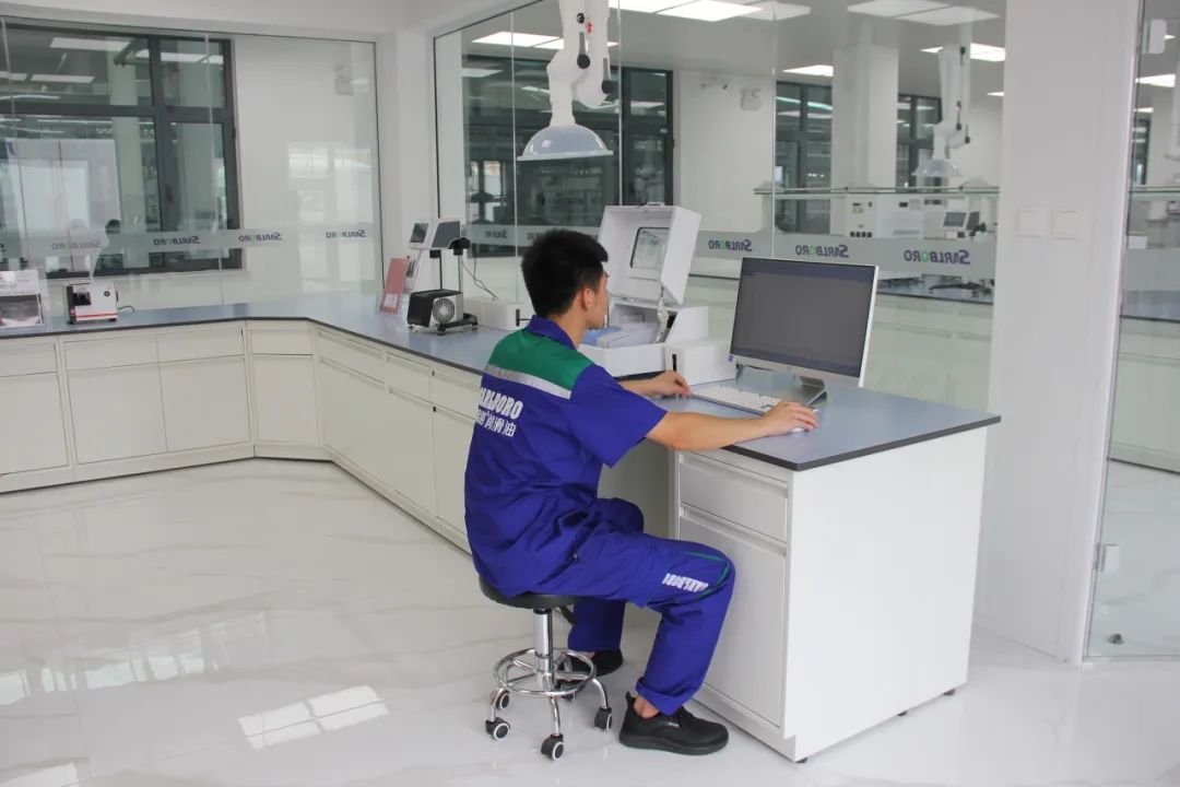 圣保路科研實驗中心位于圣保路智造基地內(nèi)。根據(jù)不同檢測項目,這里配備了中央實驗室、通風(fēng)廚實驗室、潤滑脂實驗室、水基實驗室、摩擦實驗室,還有“武功蓋世”的精密實驗室。