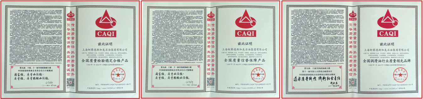 迎接即將到來的又一個全國質(zhì)量月——9月之際,8月11日,中國質(zhì)量協(xié)會向上??沦惖滤辜用朗图瘓F(tuán)有限公司頒發(fā)三大榮譽(yù),即全國質(zhì)量檢驗穩(wěn)定合格產(chǎn)品、全國質(zhì)量信譽(yù)保障產(chǎn)品、全國潤滑油行業(yè)質(zhì)量領(lǐng)先品牌。這是在新的市場形勢下,柯賽德斯加美石油集團(tuán)深耕能源,堅持質(zhì)量振興企業(yè)、科技助推發(fā)展、誠信塑造品牌戰(zhàn)略的長期努力結(jié)出的碩果。