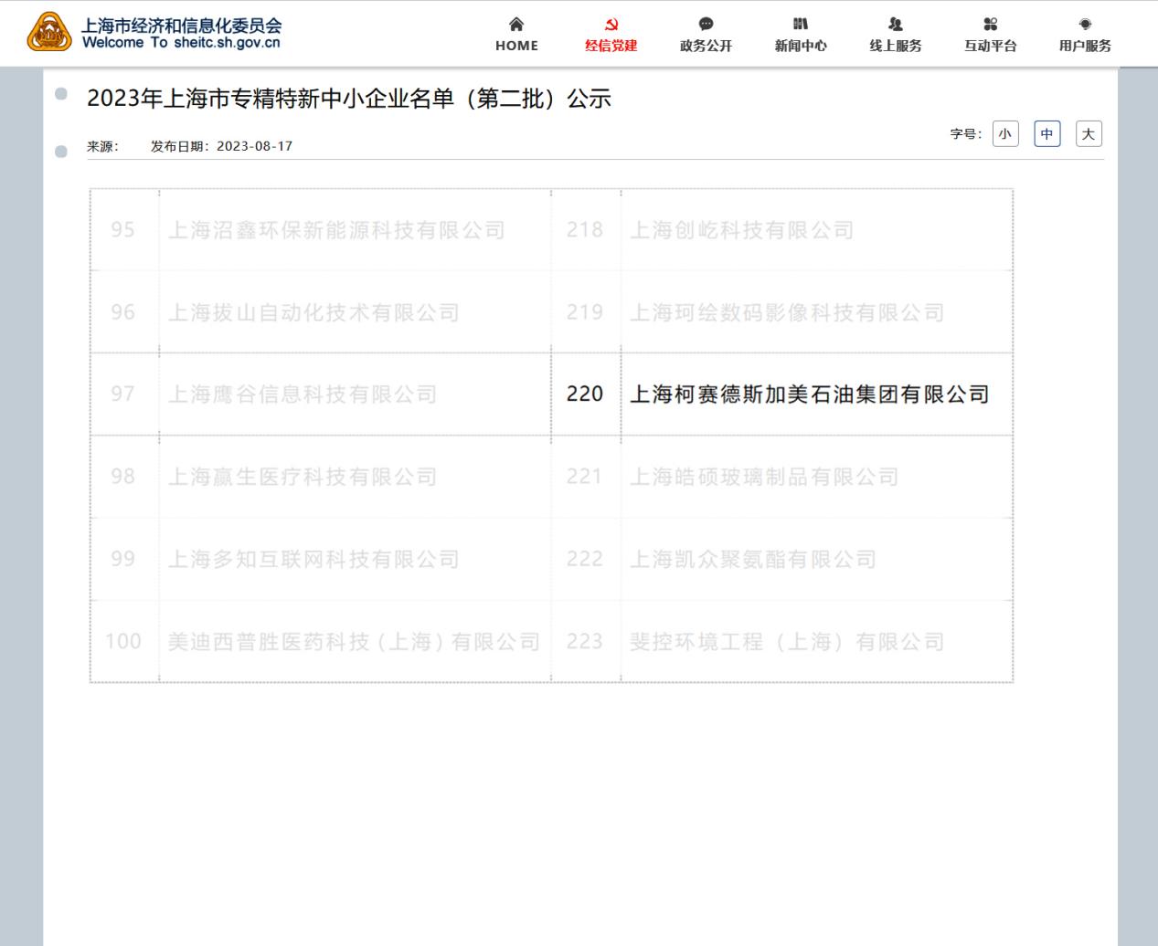 柯賽德斯加美石油集團(tuán)進(jìn)入“上海市專精特新”名錄