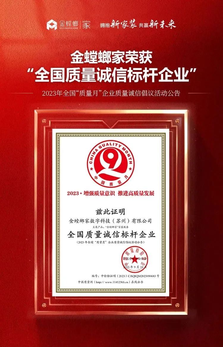 共筑質(zhì)量誠信!金螳螂家再次榮獲「全國質(zhì)量誠信標桿企業(yè)」榮譽稱號