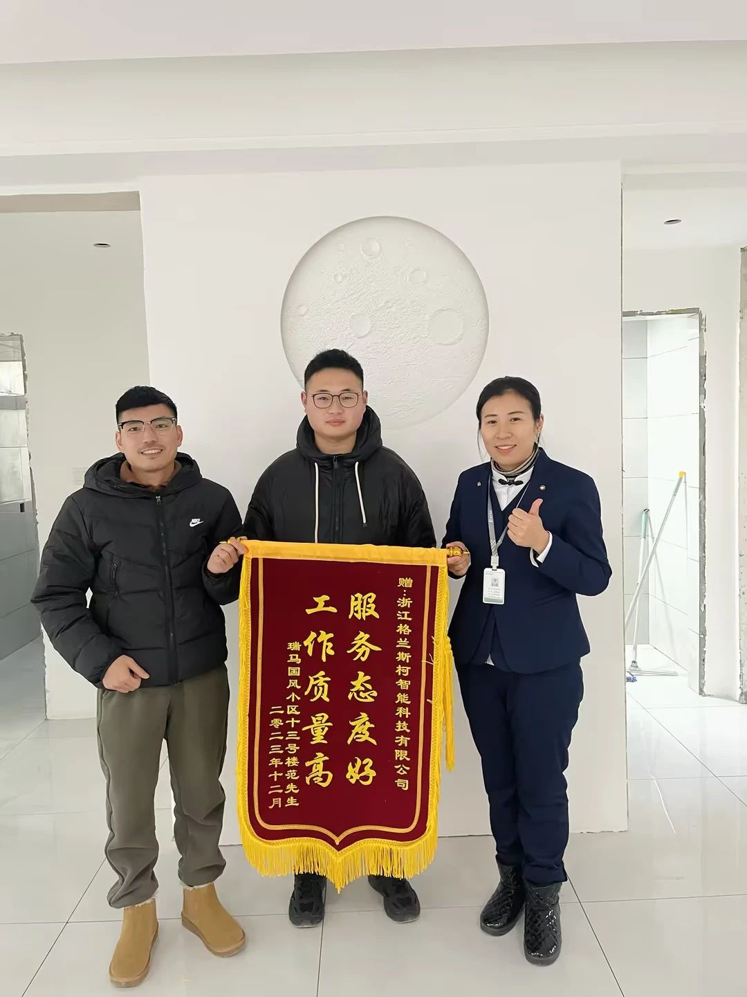 2023年12月,堅朗格蘭斯柯新風(fēng)事業(yè)部又增添了一面錦旗--“服務(wù)態(tài)度好,工作質(zhì)量高”,錦旗由瑞馬國風(fēng)小區(qū)物業(yè)、十三號樓業(yè)主范先生共同贈送,表達對格蘭斯柯新風(fēng)專業(yè)、貼心服務(wù)的感謝和認(rèn)可。