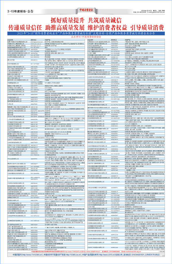 質(zhì)檢協(xié)會網(wǎng)絡部主任劉麗告訴記者,質(zhì)量誠信是社會信用體系的重要基礎。產(chǎn)品和服務質(zhì)量既關系企業(yè)高質(zhì)量發(fā)展,也關系百姓高品質(zhì)生活。通過3·15活動等專用標識的廣泛應用,不僅可以對產(chǎn)品防偽知識等識假技能進行科普,營造抵制假冒偽劣的良好社會氛圍,助力形成多方參與的假冒偽劣治理局面,同時還能夠有效傳播企業(yè)資訊,暢通線上線下訴求渠道,協(xié)助企業(yè)提升品牌形象,切實贏得消費者對企業(yè)品牌和產(chǎn)品更多的信任。