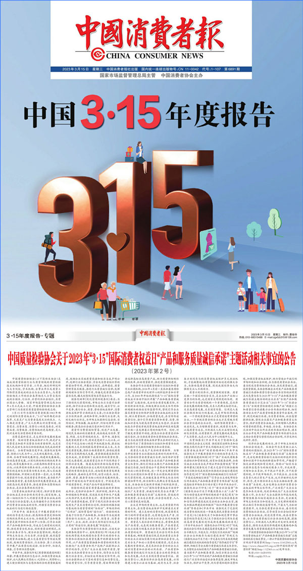 中國質(zhì)量檢驗(yàn)協(xié)會(huì)關(guān)于2023年“3·15”國際消費(fèi)者權(quán)益日