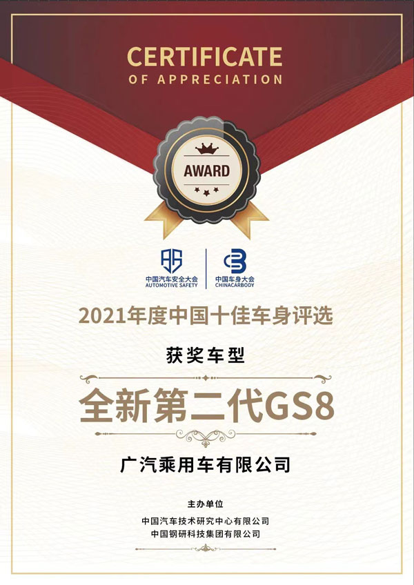 全新第二代GS8獲2021年度中國(guó)十佳車(chē)身