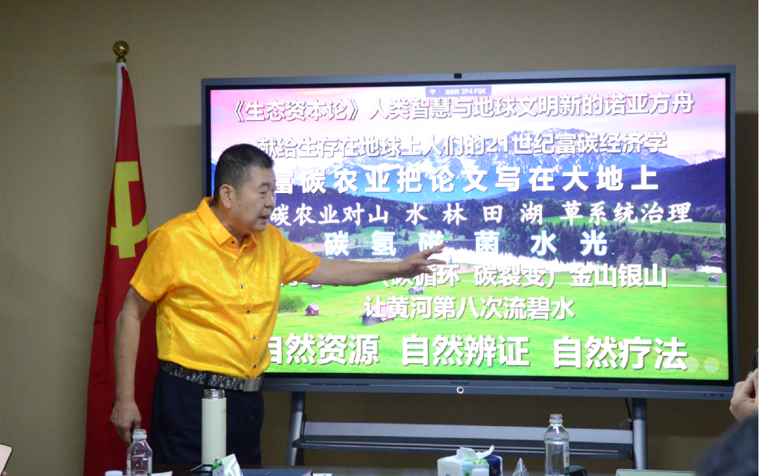 在交流會上,袁東來教授以《富碳農(nóng)業(yè)“碳”索未來》為題進行專題授課,介紹了碳中和、富碳農(nóng)業(yè)及其發(fā)展創(chuàng)新理念等相關理論知識,對國際國內(nèi)相關實踐經(jīng)驗進行了講解,深入闡釋了碳中和與地區(qū)高質(zhì)量發(fā)展的關系并就富碳農(nóng)業(yè)的發(fā)展與展望、“雙碳”背景下農(nóng)業(yè)產(chǎn)業(yè)的綠色轉型等問題進行了分析與解讀。集團董事長黃慶明、集團監(jiān)事長云恒寧、集團顧問團隊劉錦超教授、柏威廉教授、吳俁達教授及全體管理人員參加了此次交流。