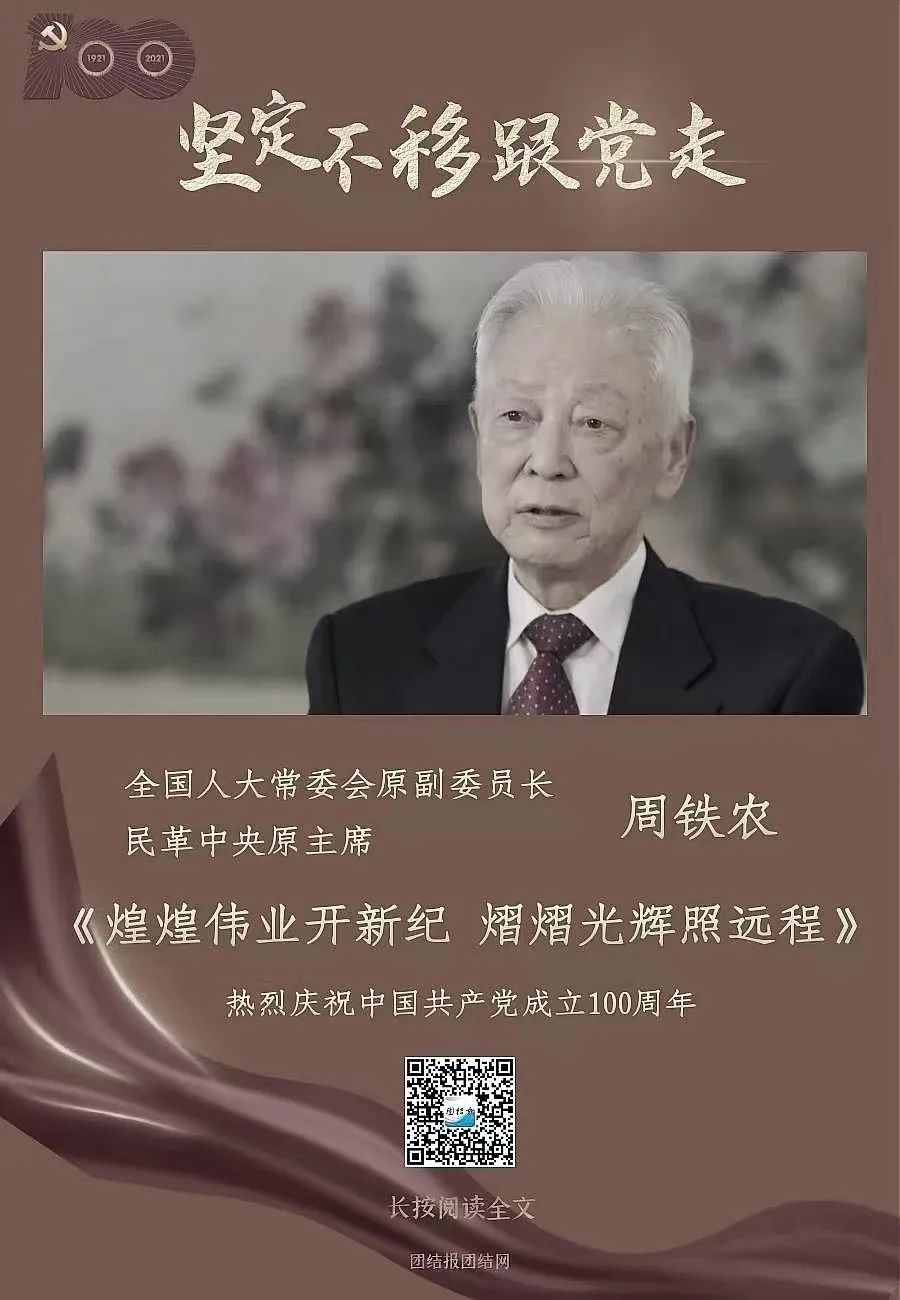 此時此刻,我們深切緬懷周鐵農(nóng)主席!“團結報團結網(wǎng)”特別刊發(fā)周鐵農(nóng)晚年接受本報記者專訪的文章《煌煌偉業(yè)開新紀 熠熠光輝照遠程——專訪民革中央原主席周鐵農(nóng) 》(首發(fā)于2021年6月29日),以表達我們的深切悼念和緬懷敬仰之情。