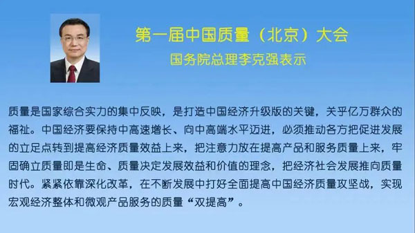 首次舉辦中國質量(北京)大會。從2014年開始,我國持續(xù)以國家名義召開質量大會,開創(chuàng)了中國質量發(fā)展的新歷史。