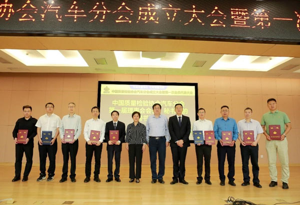 圖為中國(guó)質(zhì)量檢驗(yàn)協(xié)會(huì)汽車分會(huì)第一屆理事會(huì)當(dāng)選會(huì)長(zhǎng)、副會(huì)長(zhǎng)獲頒聘書