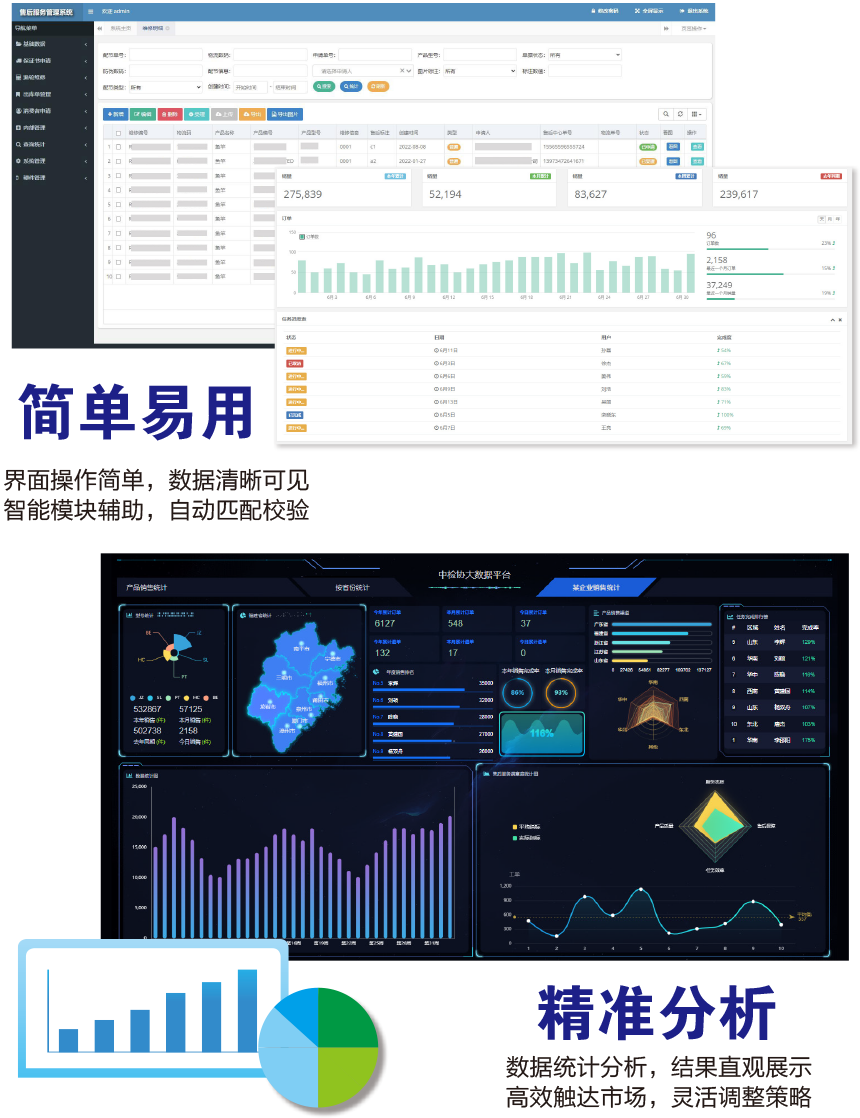應(yīng)用說(shuō)明:基于中國(guó)質(zhì)量檢驗(yàn)協(xié)會(huì)防偽溯源和物流管理服務(wù)系統(tǒng)的一品一碼,采用數(shù)字化的手段統(tǒng)一管理售后維修體系,解決目前企業(yè)存在的手動(dòng)工作量大,操作繁瑣和數(shù)據(jù)分散不方便統(tǒng)計(jì)等問題,串聯(lián)產(chǎn)品管理過(guò)程的每一個(gè)環(huán)節(jié),打通整個(gè)業(yè)務(wù)的數(shù)據(jù)鏈條,優(yōu)化工作內(nèi)容,提升工作效率。實(shí)現(xiàn)銷售單自動(dòng)導(dǎo)入、維修標(biāo)簽打印、過(guò)程統(tǒng)一管理、信息匯總操作、任務(wù)定時(shí)執(zhí)行、郵件通知、OCR智能識(shí)別圖像和維修價(jià)格自動(dòng)計(jì)算等功能,增強(qiáng)企業(yè)的市場(chǎng)綜合競(jìng)爭(zhēng)力。