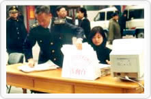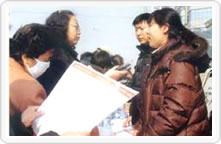 國(guó)家質(zhì)檢總局組織的2003年3·15咨詢活動(dòng) 現(xiàn)場(chǎng)掠影(圖為:國(guó)家質(zhì)檢總局產(chǎn)品質(zhì)量申訴 處理中心和中國(guó)質(zhì)檢協(xié)會(huì)工作人員 在咨詢現(xiàn)場(chǎng)發(fā)放資料) |