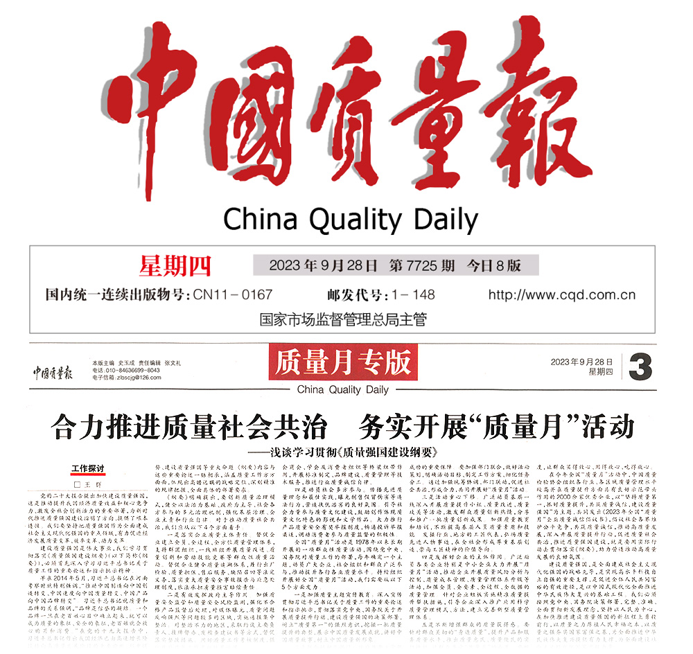 - 中國質量報——合力推進質量社會共治 務實開展“質量月”活動——淺談學習貫徹《質量強國建設綱要》